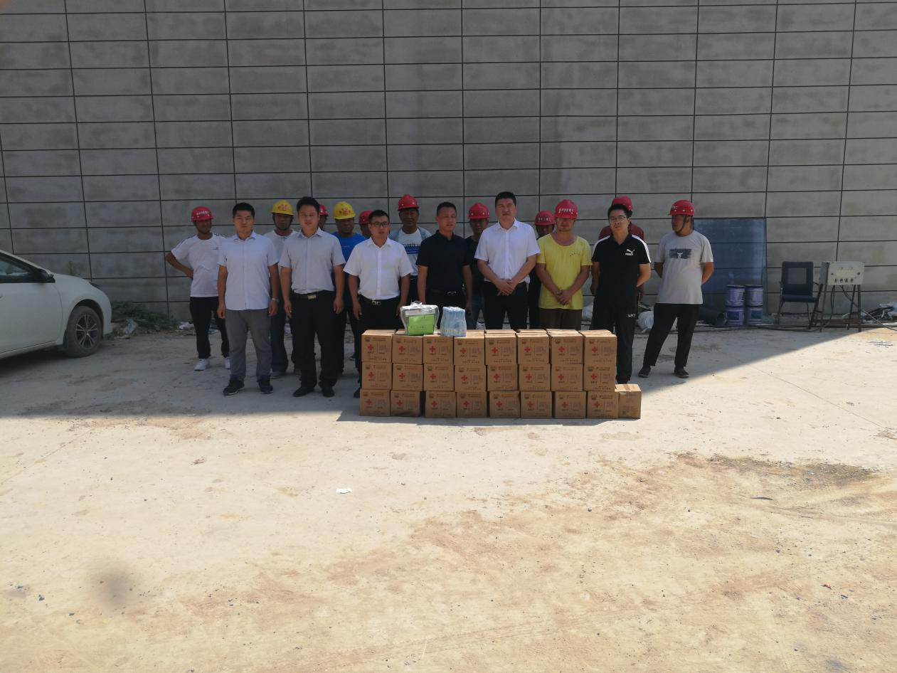 8月18日,安徽融城集團董事長于濤、董事李新華、項目管理部全體人員等一行先行來到界首市進出口基地項目施工現(xiàn)場,代表公司感謝施工方及工人們的辛勤付出,并送上礦泉水、風油精、防中暑藥品等物品。