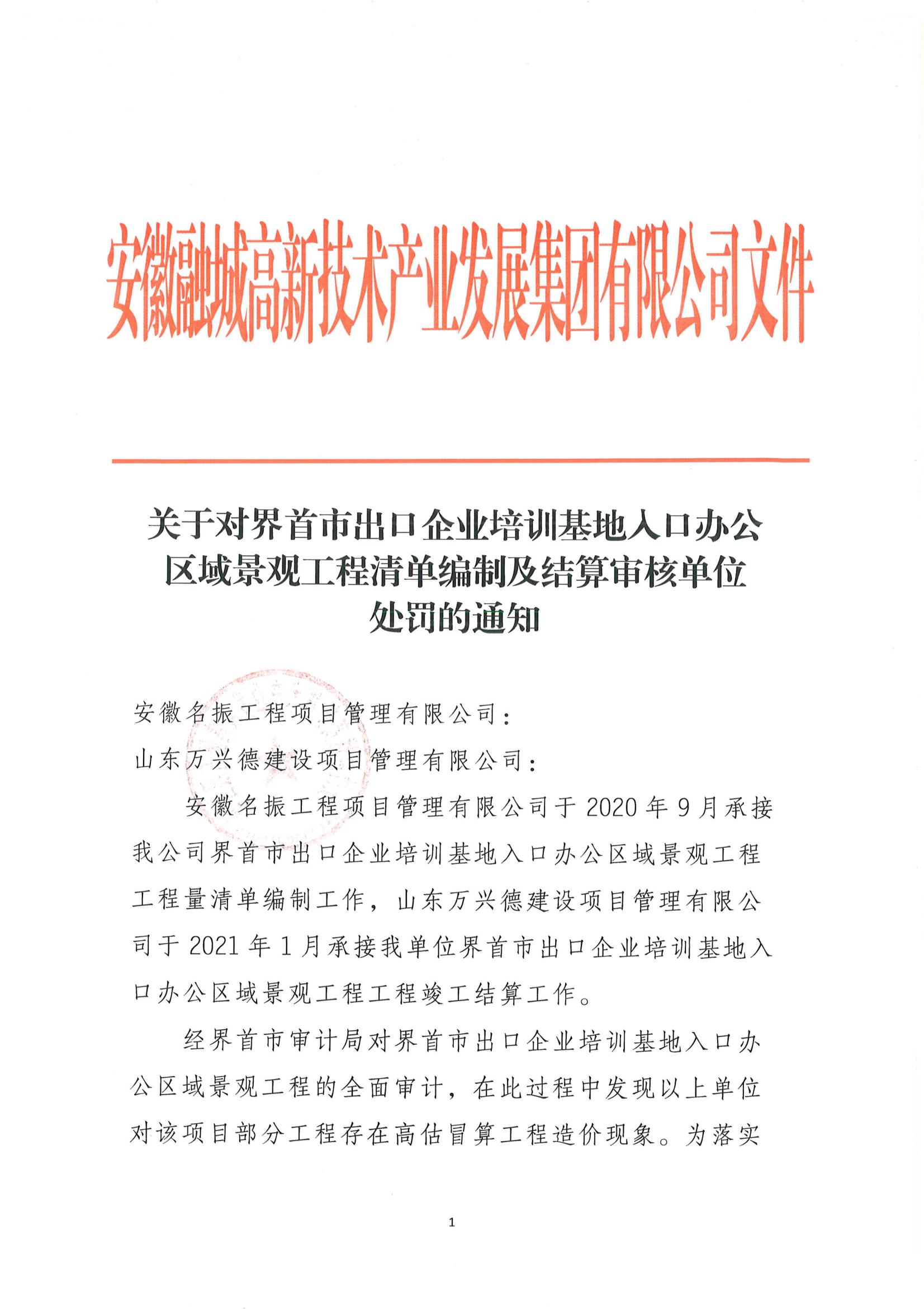 關(guān)于對界首市出口企業(yè)培訓(xùn)基地入口辦公區(qū)域景觀工程清單編制及結(jié)算審核單位 處罰的通知
